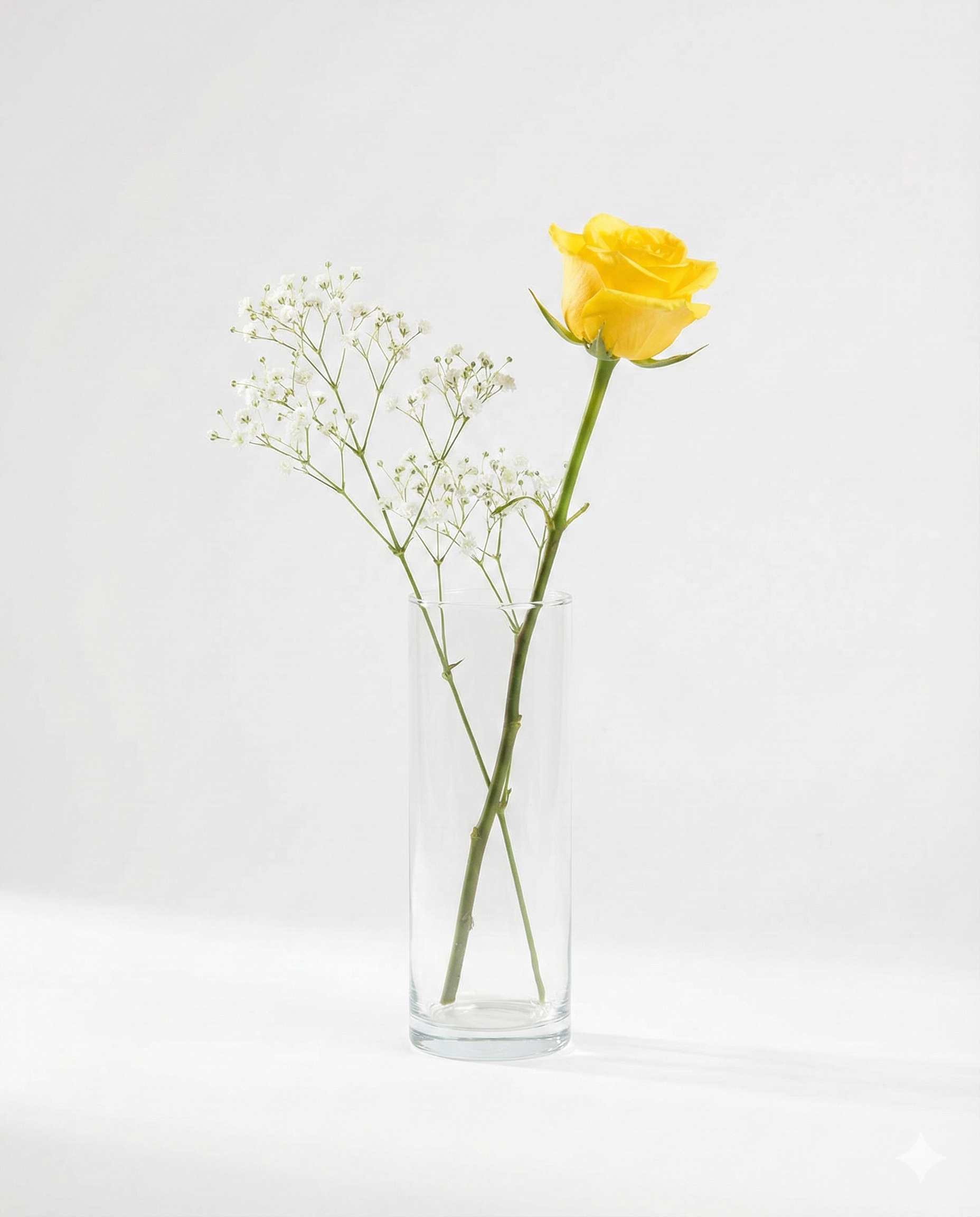 Send a little ray of sunshine to brighten someone's day effortlessly. This charming gesture creates a warm and happy feeling the moment it arrives. A single, radiant yellow rose stands tall in a simple clear glass vase. It is accented by clouds of tiny white baby's breath flowers that add a soft, delicate texture. The crisp green stem looks fresh against the clean water. This arrangement is the perfect choice for a best friend, a helpful colleague, or as a sweet get-well-soon gift. It fits beautifully on a busy desk or a small bedside table. This rose delivers a powerful message of friendship and joy without saying a word.